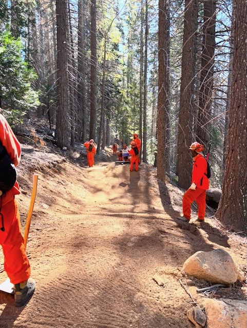 Lots of trees were dropped/cleared, soil pits filled, and backslopes flattened. The Deadwood Crew did a great job on the lower segment. Just look at that trail. One of the guys said it looked like a brown carpet. Yeah, we’re rolling out the brown carpet for our trail users. And look at that nice, angled backslope on the left side.